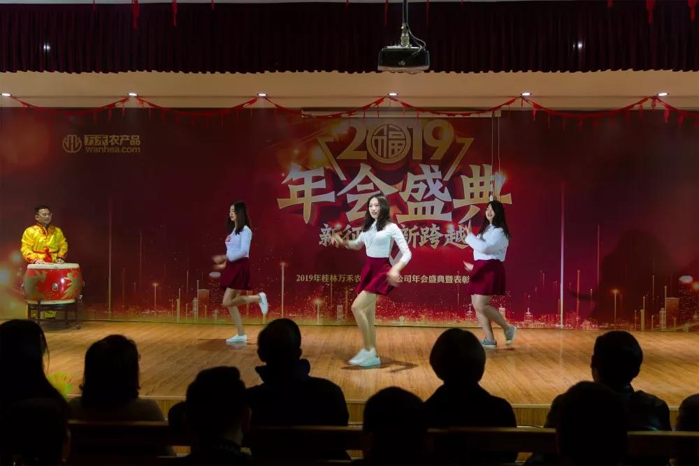 在主持人的倒数声中,四面大鼓激烈的鼓点拉开了年会的序幕,三位短裙美女的舞蹈串烧瞬间燃爆全场!