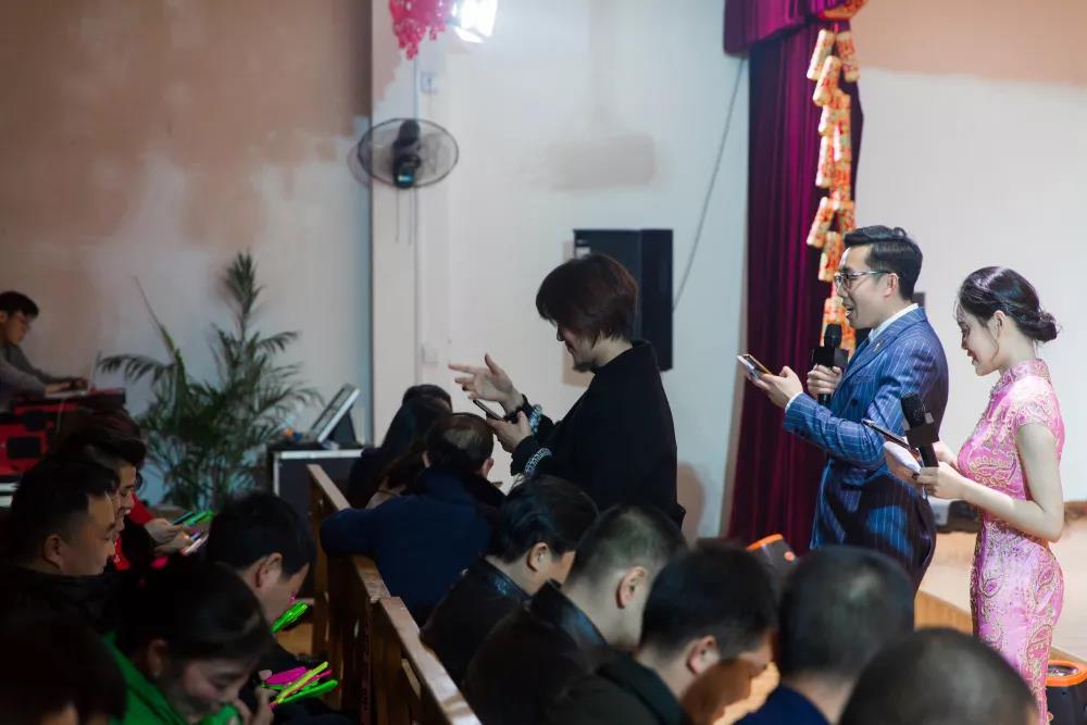 主持人胡政兴、罗彩霞宣布年会正式开始,并向大家拜早年,祝大家猪年大吉!